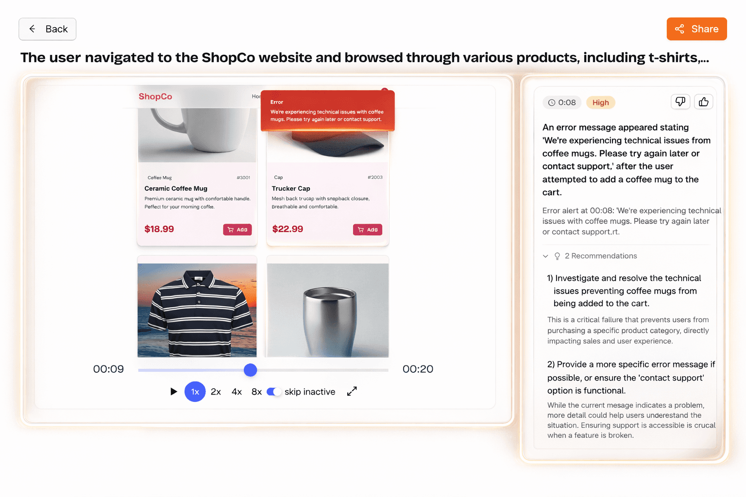 Modern observability stacks are excellent at collecting signals: session replays, conversations, logs, metrics, traces, alerts.